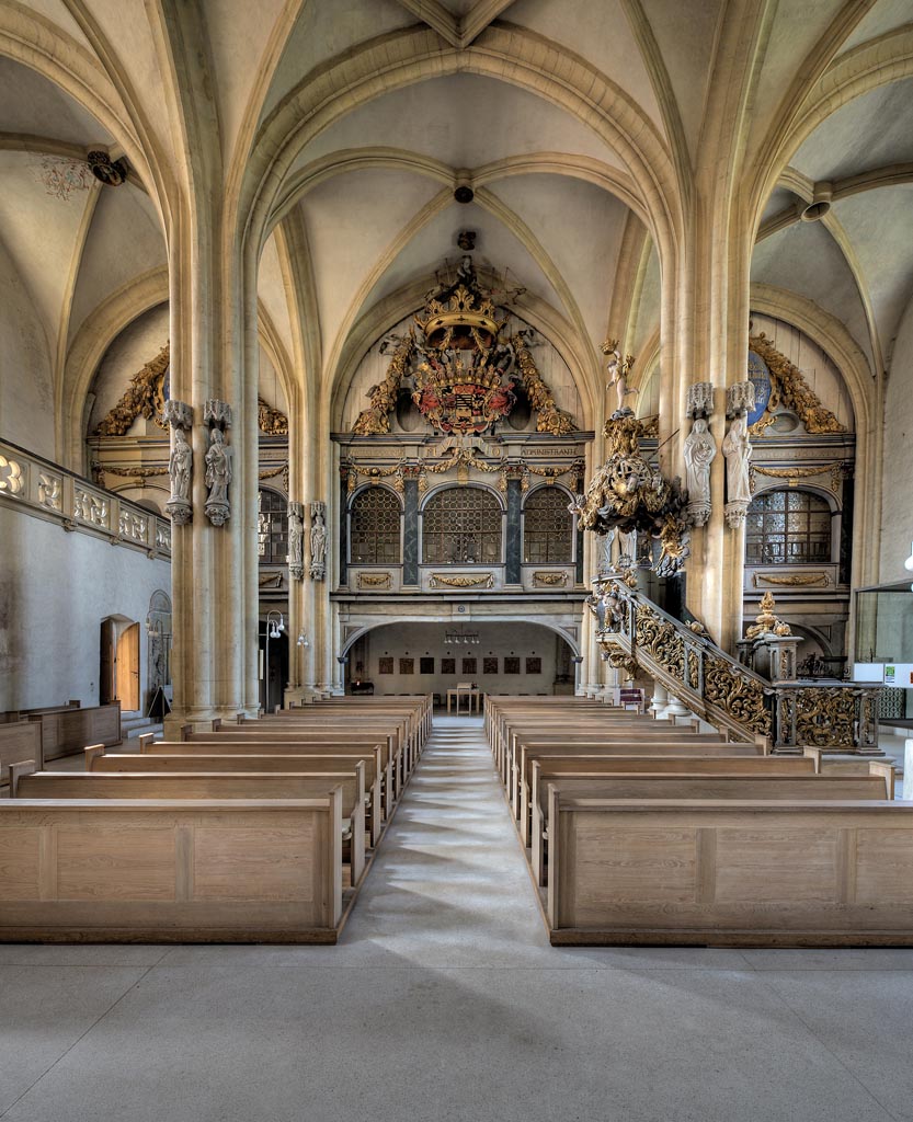 Die große Sonderausstellung »Dialog der Konfessionen« führt Sie mit ihren vier Ausstellungsteilen zu authentischen Glaubensorten in Zeitz: Schloss Moritzburg als Ort der vormaligen Bischofsburg, der Dom St. Peter und Paul als über tausendjährige Kathedralkirche und Grablege von Julius Pflug, die Stiftsbibliothek als Hort des Wissens und Aufbewahrungsort der im Original erhaltenen Privatbibliothek von Pflug sowie die seit 1539 reformierte Pfarrkirche St. Michael, deren evangelischen Pfarrer Bischof Julius 1542 übrigens in seinem Amt beließ.