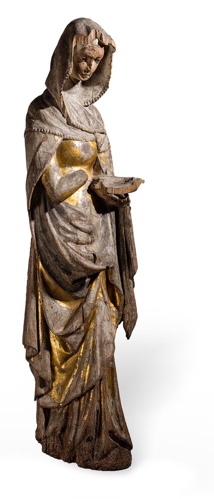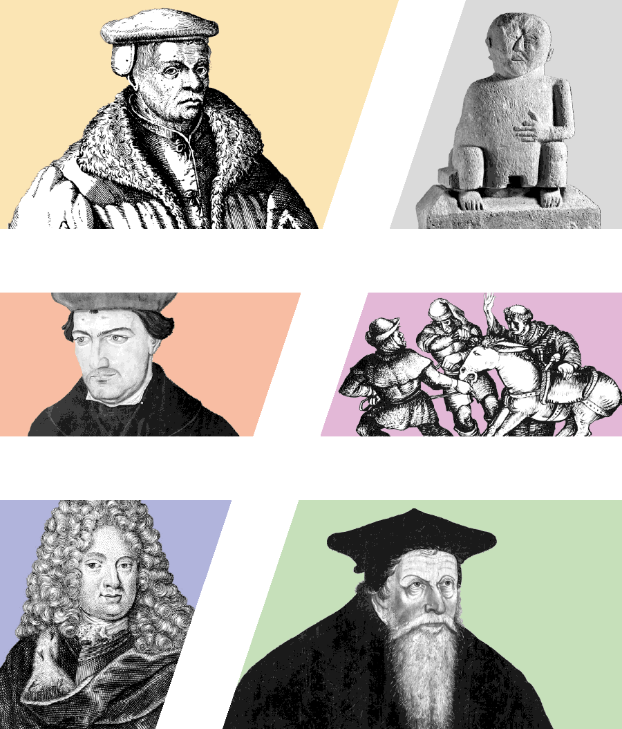 Symbolfigur der Ausstellung ist der seit gut 500 Jahren unter dem Dachgesims des Wohnturms im Brunnenhof thronende »Haingott«. Doch die Figur ist viel älter, entstand wohl vor mehr als 2.000 Jahren. Und wer wurde dargestellt? Es gibt verschiedene Deutungen, aber genau wissen wir es nicht! Was haben sich unsere Vorfahren von der Gottheit erhofft, wie zu ihr gebetet, wie sie verehrt? Der »Haingott« schweigt und ist doch Verbindung zu den Menschen einer fernen Vergangenheit. Wenn Sie zur Rätsellösung beitragen können, so teilen Sie es uns doch bitte mit.