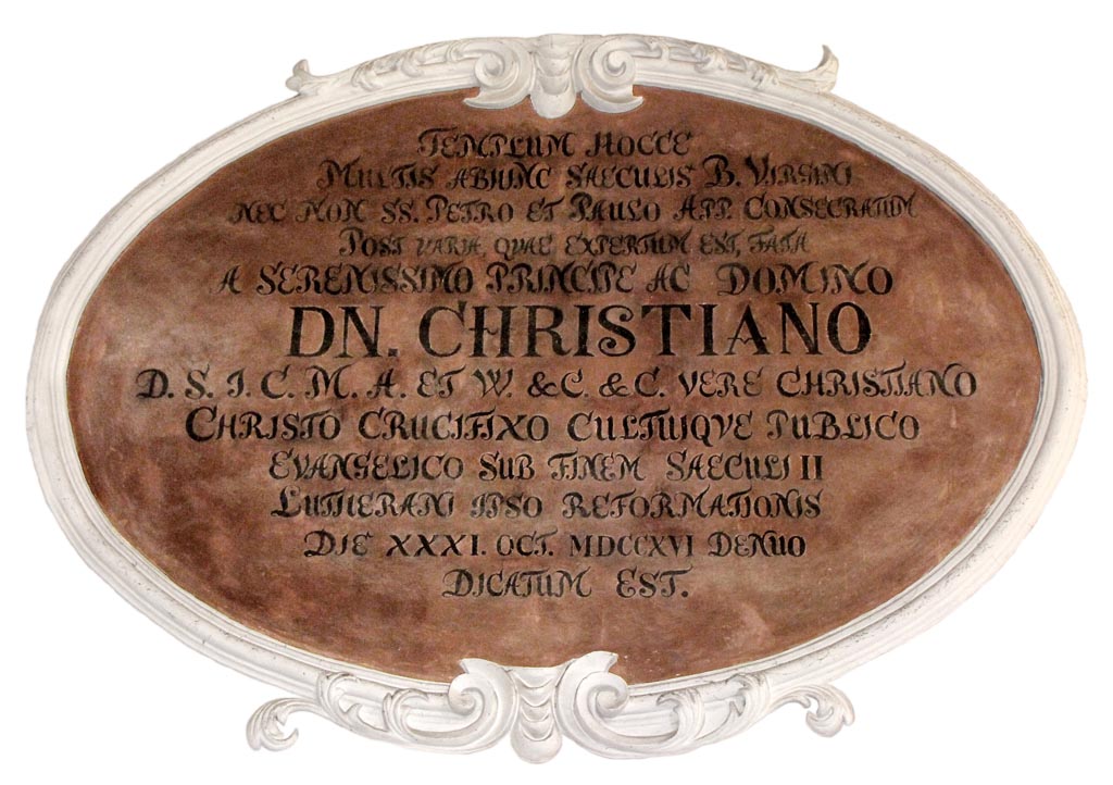 Im Mai 1712 hatte Christian den unvollendeten Umbau der Querfurter Burgkirche besichtigt und die Fertigstellung beschlossen. Neben der Sangerhäuser St. Trinitatiskirche war Querfurt sein zweites Großprojekt. Als Auftakt zum Jubiläumsjahr 1717 ließ der Herzog die neue Burgkirche am Reformationstag 1716 prachtvoll einweihen. Mit diesem klaren Signal Richtung Dresden verband er eine Würdigung seiner landesherrlichen Vorfahren im Querfurter Land. Der Fürst forderte durch Inschriften zum Gebet auf und stellte seine Leistung als Stifter heraus. Es ist bemerkenswert, dass Christian dabei die an den heiligen Brun erinnernden Objekte am Platz beließ.